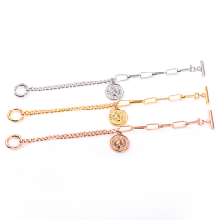 欧美复古圆牌双拼民族风女皇钛钢锁骨链手链饰品女简约气质ins