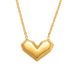 新款一心一意爱你钛钢项链女几何立体简约个性爱心锁骨链饰品