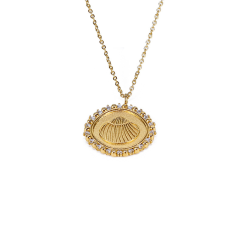 简约轻奢个性圆牌镶锆石吊坠锁骨链小众百搭设计项链饰品