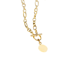 大方金色复古椭圆绿松石不锈钢项链小众高级时尚吊坠