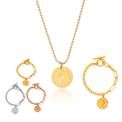 钱币圆牌项链手链锁骨链不锈钢吊坠个性女简约珠链饰品