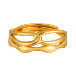 韩版创意钛钢双层线条交叉镂空打结细圈不锈钢简约蝴蝶结开口戒指