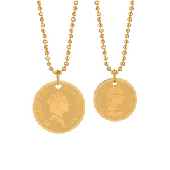 2024新款钛钢颈链饰品小众轻奢女皇圆牌吊坠高级感项链女