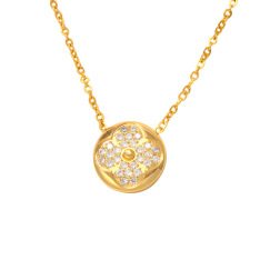 韩国钛钢18k饰品圆形四叶草镶钻沙金项链女小众高级感锁骨链