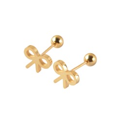 【跨境】简约不锈钢超美少女甜美风蝴蝶结耳骨钛钢耳蜗钉小众螺纹螺丝耳钉
