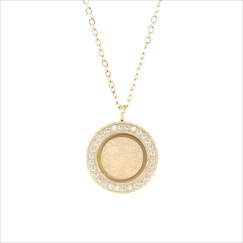 韩国饰品锁骨链钛钢时尚圆牌压砂项链不锈钢饰品镶嵌锆石吊坠