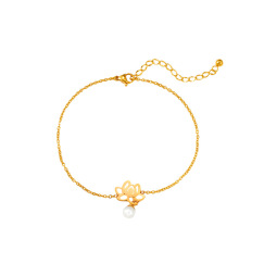 小众饰品莲花珍珠韩国钛钢沙金脚链女孩高级感金色不锈钢饰品足链