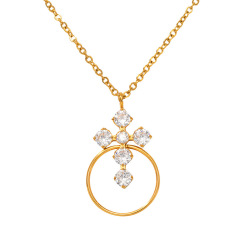 工厂直销女款不锈钢饰品项链钛钢圆圈十字架镶嵌锆石吊坠简约时尚