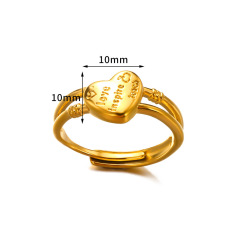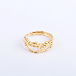 【跨境】镂空开口可调节不锈钢戒指批发 钛钢18k金几何线条爱心活口戒指女