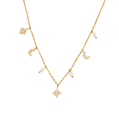 时尚优美金满天星项链钛钢微镶锆石项链亚马逊爆款跨境热星月