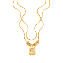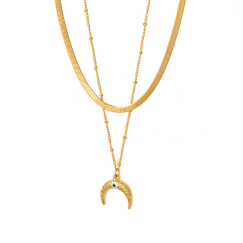 跨境热销不锈钢高级时尚双层蛇骨链吊坠项链女不掉色饰品厂家批发