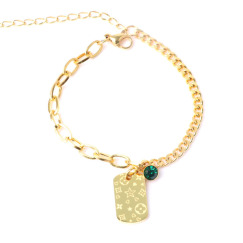 新款网红镀金轻奢18k金祖母绿方牌钛钢手链 小众女批发爆款金