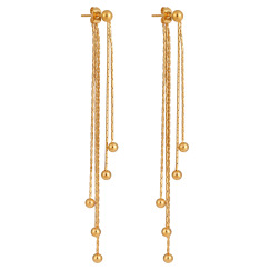 日韩版简约个性气质长款多层流苏圆珠钛钢镀18K玫瑰金色耳钉