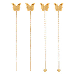 蝴蝶钛钢耳线流苏气质可爱小清新耳饰品个性学生设计感耳坠