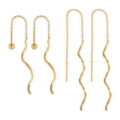 跨境金色转运珠耳线女钛钢长款流苏不掉色耳环网红爆款耳饰品