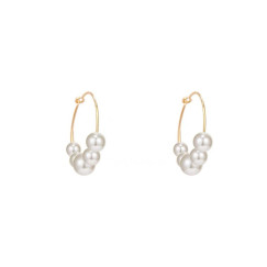 几何圆圈仿珍珠耳环2024年新款潮流复古港风网红耳饰女