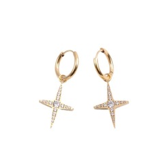 跨境欧美个性钛钢耳饰简约镶锆石十字架不锈钢耳圈气质耳环女批发