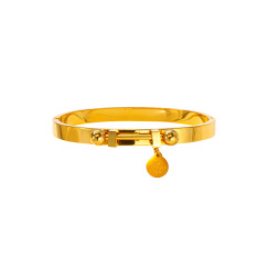 小众不掉色哑铃钛钢沙金卡扣手镯女小圆牌杠铃插扣不锈钢批发爆款