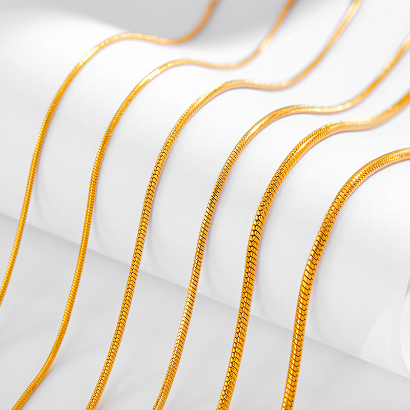 跨境热销真空电镀圆蛇骨链钛钢裸链配链配饰轻奢不锈钢锁骨圆蛇链材质 处理工艺 品牌 造型 产地 链子样式 是否多层 主要下游平台 颜色 有可授权的自有品牌 是否跨境出口专供货源 流行元素 上市年份/季节 风格 风格分类 主要销售地区 适用人群 流行元素分类