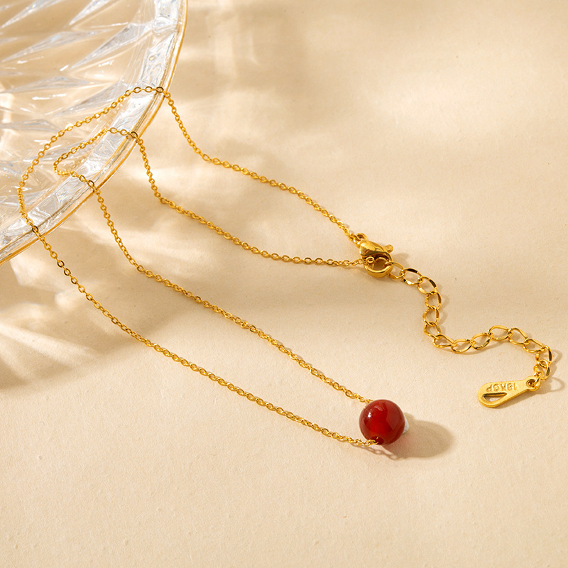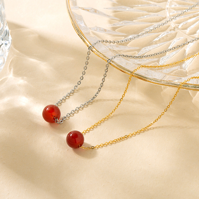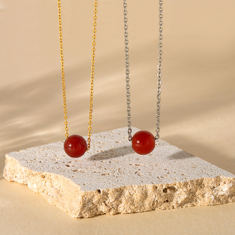 红色天然石吊坠项链简约华丽个性时尚钛钢锁骨链饰品材质 处理工艺 品牌 造型 产地 链子样式 是否多层 主要下游平台 颜色 有可授权的自有品牌 是否跨境出口专供货源 流行元素 上市年份/季节 风格 风格分类 主要销售地区 适用人群 流行元素分类