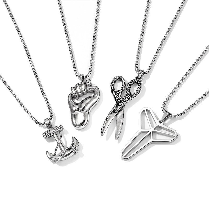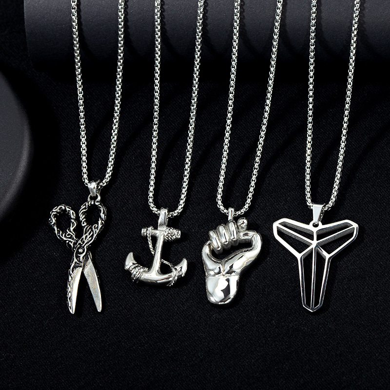 爆款热销潮男钛钢篮球曼巴剑鞘复古船锚拳头剪刀吊坠配饰项链材质 处理工艺 品牌 造型 产地 链子样式 是否多层 主要下游平台 颜色 有可授权的自有品牌 是否跨境出口专供货源 流行元素 上市年份/季节 风格 风格分类 主要销售地区 适用人群 流行元素分类