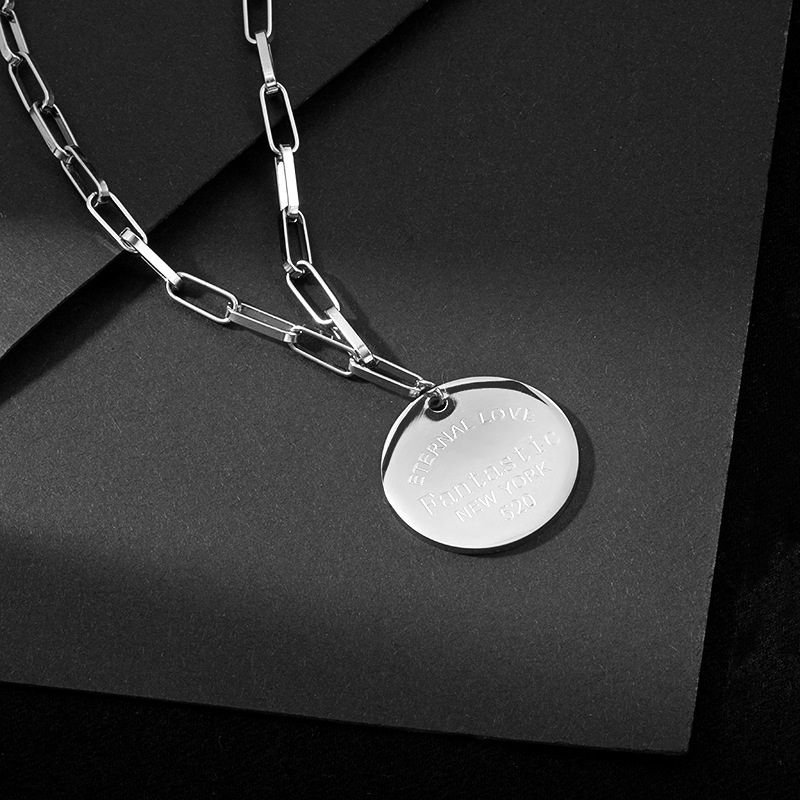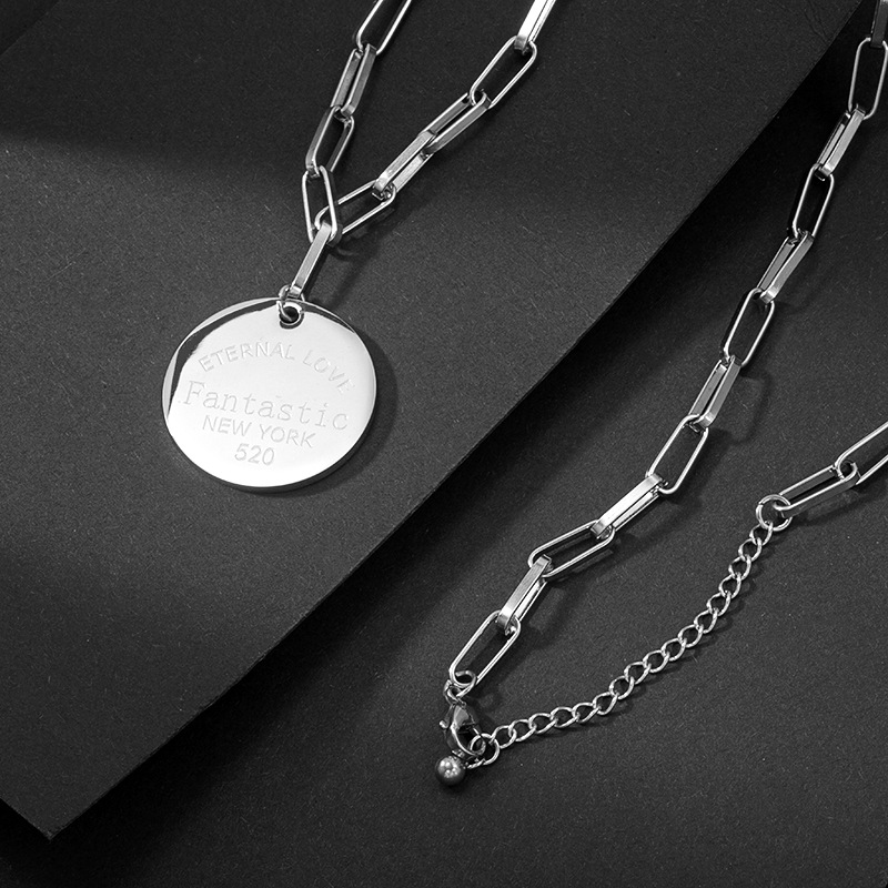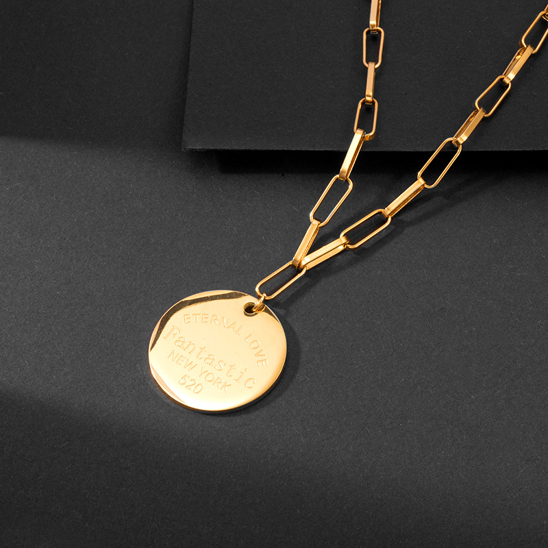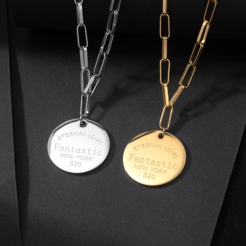 跨境外贸新品饰品时尚流行创意简约钛钢项链朋克圆片配饰吊坠材质 处理工艺 品牌 造型 产地 链子样式 是否多层 主要下游平台 颜色 有可授权的自有品牌 是否跨境出口专供货源 流行元素 上市年份/季节 风格 风格分类 主要销售地区 适用人群 流行元素分类
