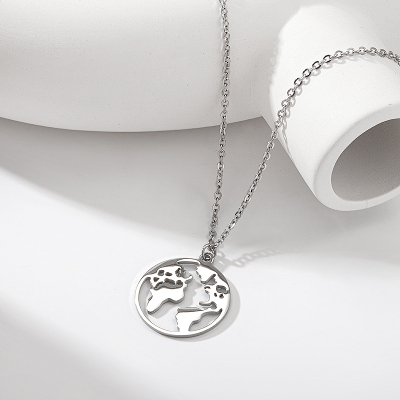 钛钢全世界地图吊坠地球项链锁骨男女情侣时尚链条潮流材质 处理工艺 品牌 造型 产地 链子样式 是否多层 主要下游平台 颜色 有可授权的自有品牌 是否跨境出口专供货源 流行元素 上市年份/季节 风格 风格分类 主要销售地区 适用人群 流行元素分类
