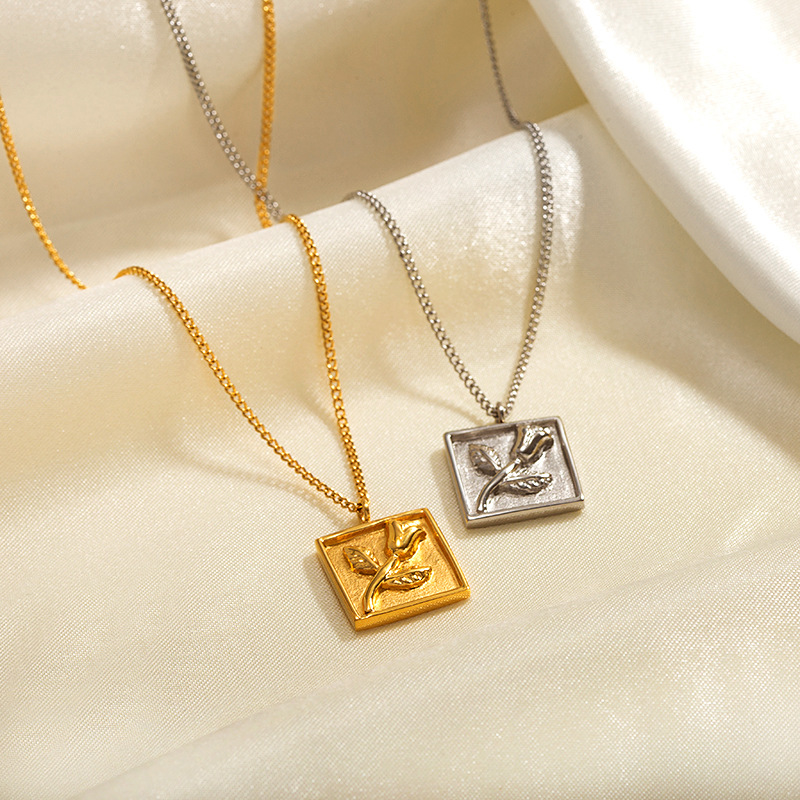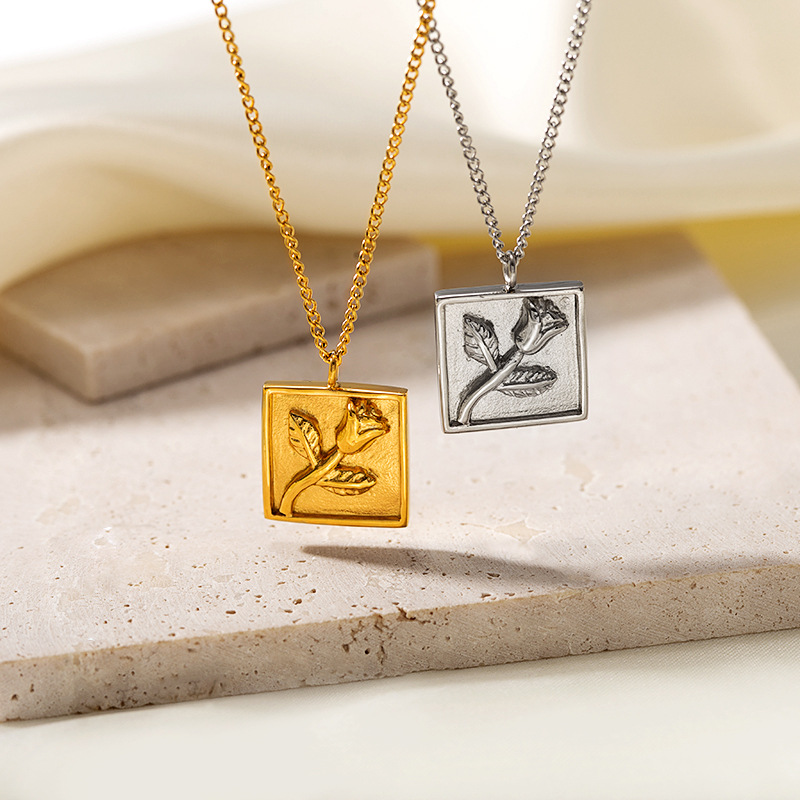 简约钛钢玫瑰花吊坠项链跨境爆款不锈钢电镀饰品材质 处理工艺 品牌 造型 产地 链子样式 是否多层 主要下游平台 颜色 有可授权的自有品牌 是否跨境出口专供货源 流行元素 上市年份/季节 风格 风格分类 主要销售地区 适用人群 流行元素分类