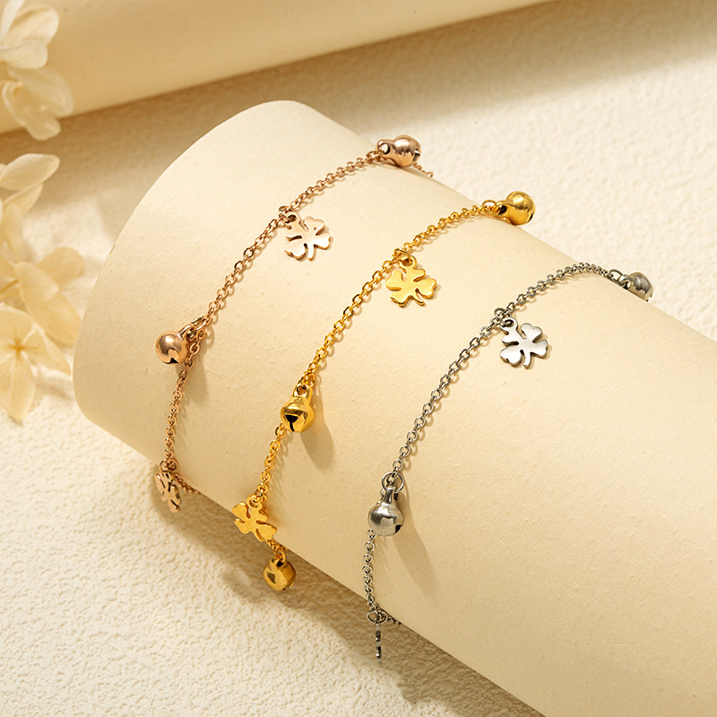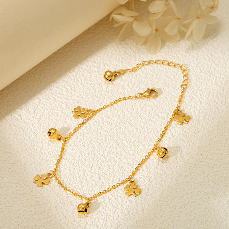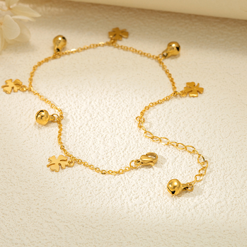铃铛流苏钛钢不掉色四叶草脚链材质 处理工艺 品牌 造型 产地 链子样式 是否多层 主要下游平台 颜色 有可授权的自有品牌 是否跨境出口专供货源 流行元素 上市年份/季节 风格 风格分类 主要销售地区 适用人群 流行元素分类
