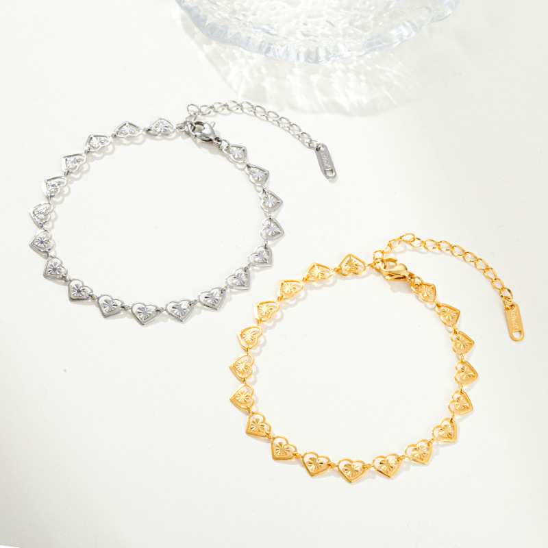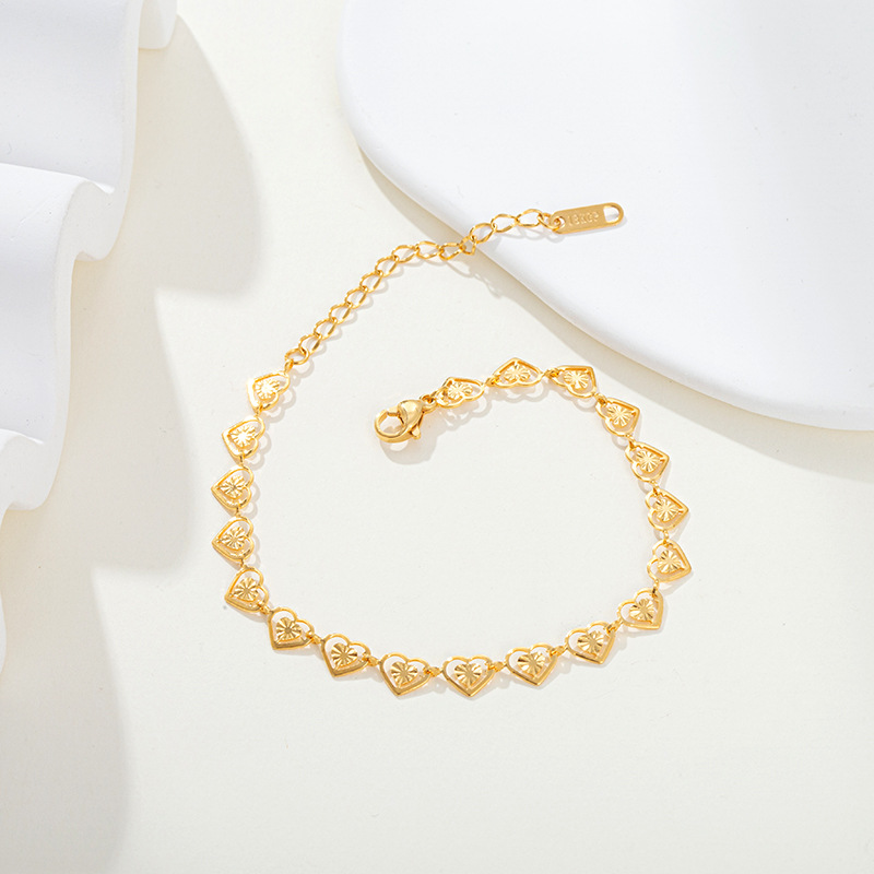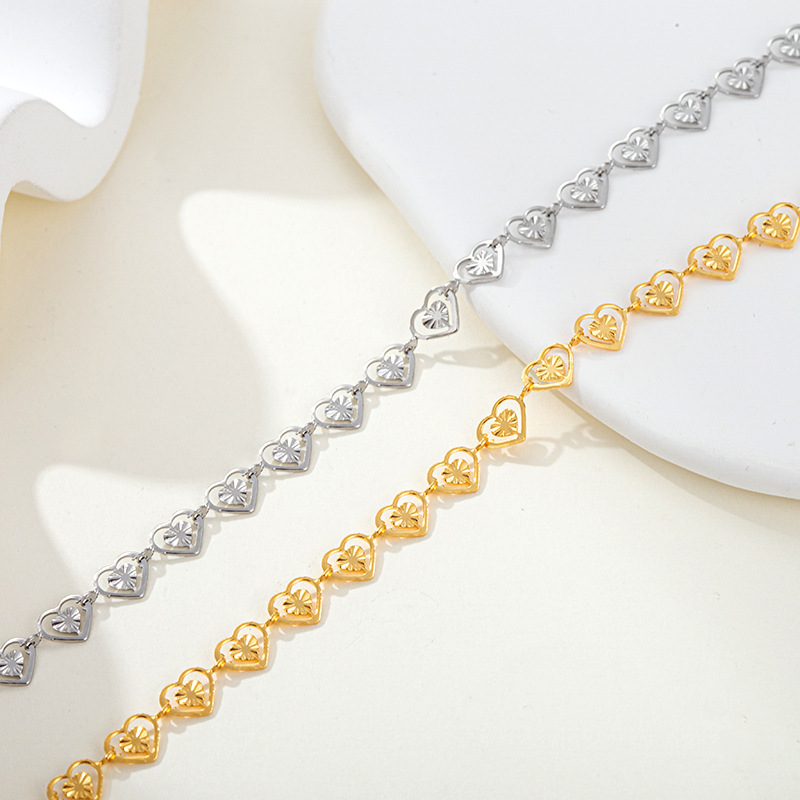 爱心镂空电镀金色手链材质 处理工艺 品牌 造型 产地 是否多层 主要下游平台 颜色 有可授权的自有品牌 是否跨境出口专供货源 流行元素 上市年份/季节 风格 风格分类 主要销售地区 适用人群 流行元素分类