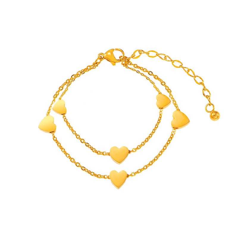 欧美双层设计感爱心钛钢手链休闲时尚精致气质百搭饰品