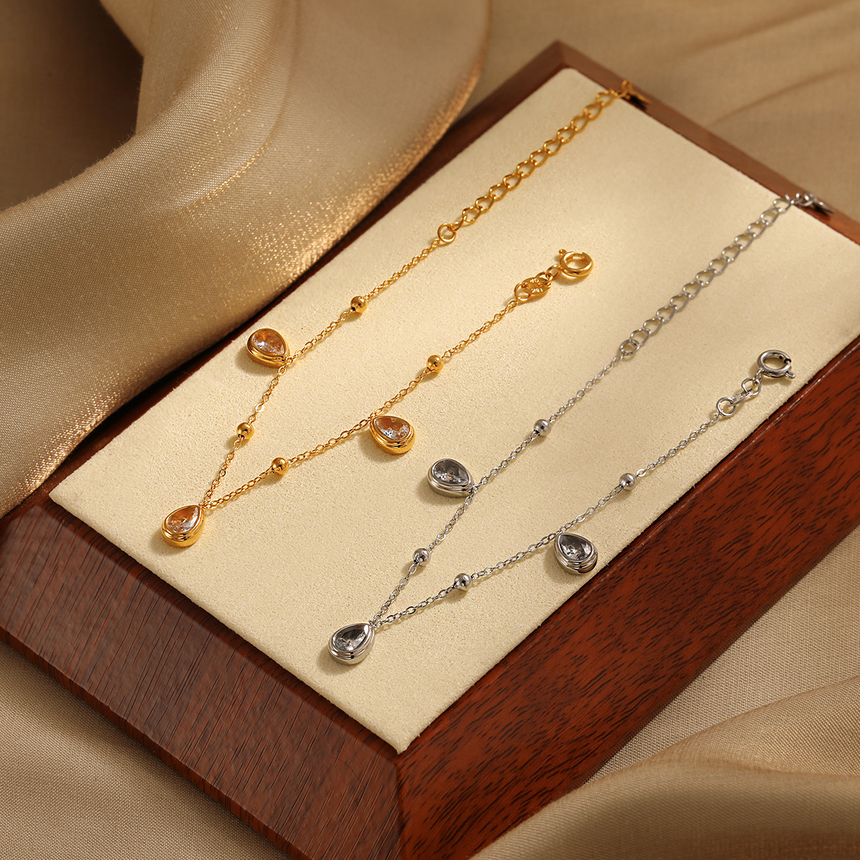 水滴镶锆石间珠钛钢手链女材质 处理工艺 品牌 造型 产地 是否多层 主要下游平台 颜色 有可授权的自有品牌 是否跨境出口专供货源 流行元素 上市年份/季节 风格 风格分类 主要销售地区 适用人群 流行元素分类