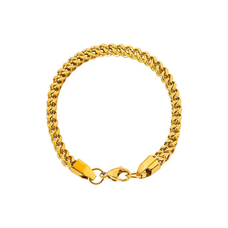 韩国小众不锈钢钛钢沙金手链男正反嘻哈潮流百搭爆款古巴高级感金