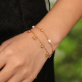 一、双层叠戴手链:腕间的诗意絮语采用304医用级钛钢为基底,真空电镀18K金色泽温润持久。上层链条缀以天然巴洛克珍珠与圆润金珠,错落间流露随性雅致;下层链条点缀立体五瓣花饰与微镶锆石,光影流转间尽显精致细节。双层叠戴设计可自由拆分,单戴简约,叠戴丰盈,适配不同穿搭场景。二、镂空花形耳钉:耳畔的春日绽放以钛钢打造镂空五瓣花轮廓,线条流畅轻盈,中心镶嵌迷你天然珍珠,如晨露般晶莹剔透。提供经典金、高级钢双色选择,金色款温暖明媚,钢色款清冷高级,耳针经过钝化处理,佩戴舒适不刮肤。三、星芒素圈戒指:指尖的星光印
