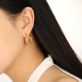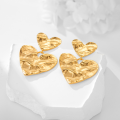 肌理艺术感双心钛钢耳环:复古褶皱里的浪漫张力以复古肌理风双心钛钢耳环为代表的设计款,将浪漫心形与工业风肌理完美融合。这款耳环采用大小双心的叠搭造型,主体以钛钢镀18K金打造,表面经手工捶打形成自然的褶皱肌理,哑光与亮面的黄金色泽交织,勾勒出不规则的金属流动感。大心形吊坠饱满立体,小心形点缀其上,错落的层次感让整体造型既保留了心形元素的甜美,又因粗粝的肌理增添了酷飒的中性气质。哑光鎏金的质感搭配灵动的垂坠效果,佩戴时随肢体动作摇曳,成为复古风穿搭中极具辨识度的点睛之笔,被消费者评价为“甜酷女孩的本命耳